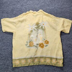 Tommy Bahama 100% Silk Yellow Short Sleeve Mens Hawaiian Shirt Pineapple XXL