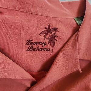 EUC-Nice coral color with palm tree textured image. Measures 24" pit to pit, and 32" in length. C1.6.5111