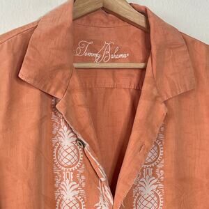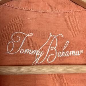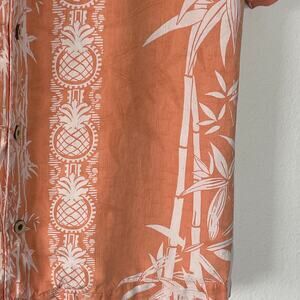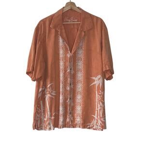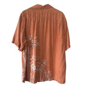 Tommy Bahama 100% silk Orange Hawaiian Print Short Sleeve Button Down Size XL
