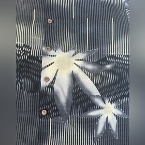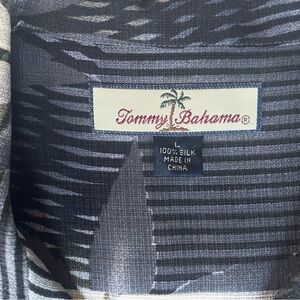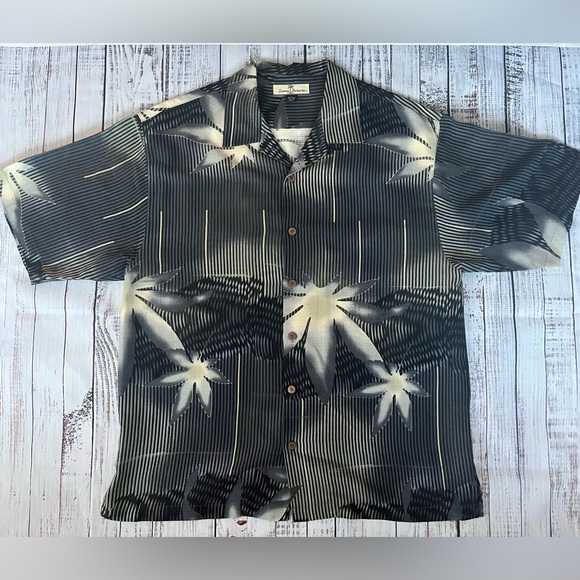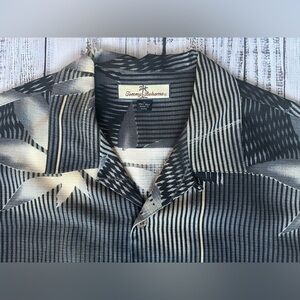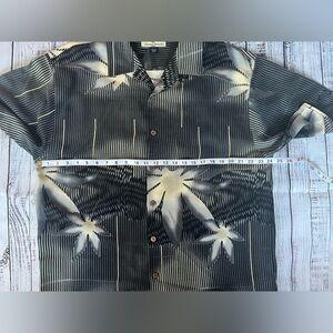 Tommy Bahama 100% silk button down shirt black green palm striped Lg
