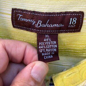 Tommy Bahama 18 Golf Yellow Striped Ghost Floral Polo Shirt Size XL
