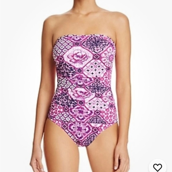 Tommy Bahama 262915 Women Tiles Of Tropic Wire-free Bandeau One-piece Size 4
