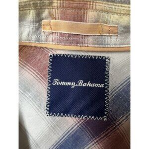 This Tommy Bahama shirt, made from a blend of linen and cotton, offers both comfort and style. Its plaid pattern adds a classic touch, suitable for a polished yet relaxed look in various settings.