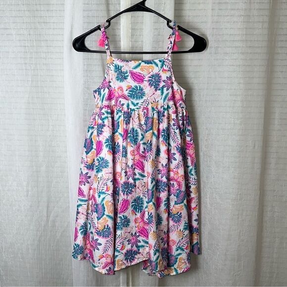 Tommy Bahama 7 White Fuchsia Teal Blue Gold Floral Tropical Cotton Dress