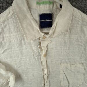 Tommy Bahama All Linen White Button Up Shirt Beach Hawaii Short Sleeve 2XL Men