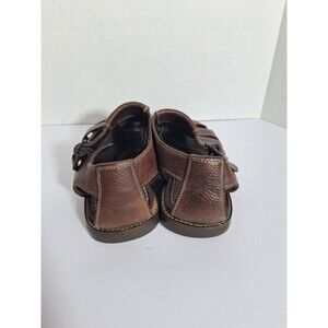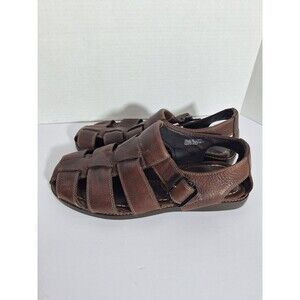 The Tommy Bahama Anchors Fisherman Sandals are a stylish and comfortable option for men's outdoor adventures. These slip-on sandals feature a buckle closure, leather upper material, and a lightweight outsole for added comfort. The brown color with the Tommy Bahama logo accents give them a casual yet nautical vibe, perfect for summer, fall, or spring outings. With adjustable straps and breathable features, these sandals are both practical and fashionable, making them a great choice for travel or everyday wear. HAS LIGHT SCUFFING. SEE PHOTOS!!!
