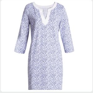 Tommy Bahama Aubrey Blue Tile Print Tunic Dress Size S/P Performance Fabric $148 Retail**