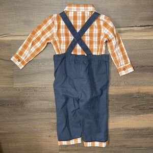 Tommy Bahama Baby Overalls and Orange Plaid Long Sleeve Shirt New Without Tags