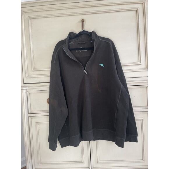 Tommy Bahama Black 1/2 Zip 100% Cotton Big And Tall 2XB READ