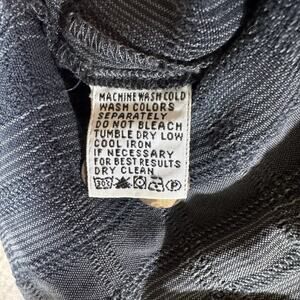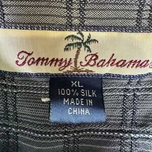 This product is a stylish Tommy Bahama men's shirt in size XL, featuring a black and grey striped pattern made from 100% silk. The button-up style and short sleeves make it a versatile and fashionable choice for casual occasions. Made in the Bahamas, this shirt exudes a sophisticated and island-inspired vibe, perfect for those who appreciate high-quality materials and timeless design.