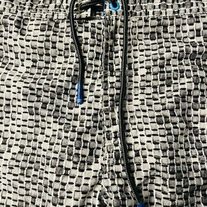 Tommy Bahama Black, Gray and White Board Shorts with Modern Pattern Size Large