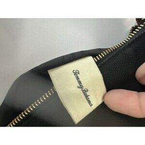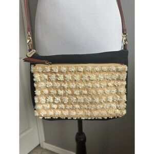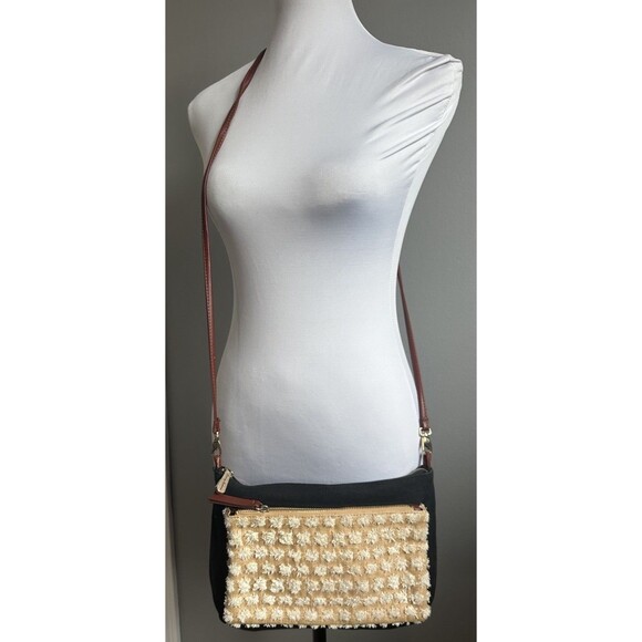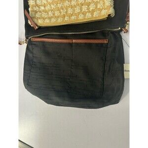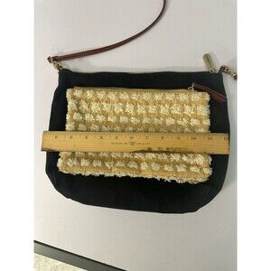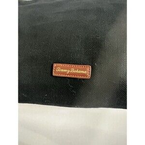 Tommy Bahama Black Linen Crossbody Bag Beige Outer Pocket Shoulder Bag Purse EUC
