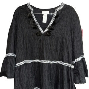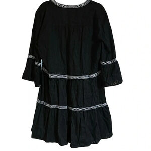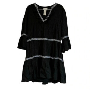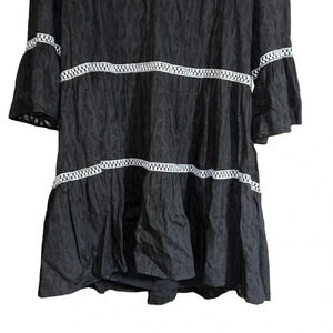 Tommy Bahama Black Vneck Embroidered Tiered Cover-up Black Size Medium