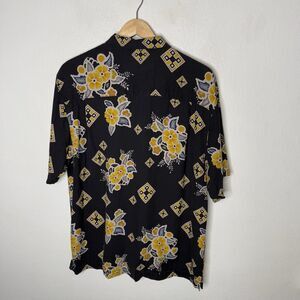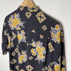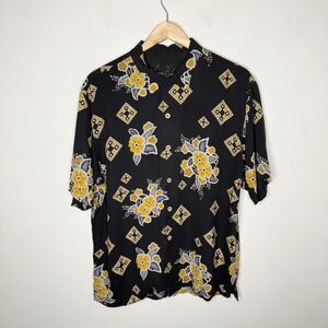Tommy Bahama Black Yellow Floral Silk Shirt Short Sleeve Aloha Men’s Large