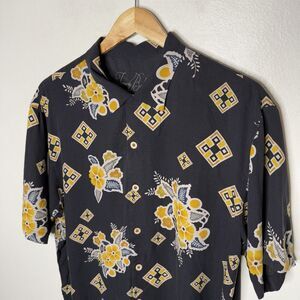 Tommy Bahama Black Yellow Floral Silk Shirt Short Sleeve Aloha