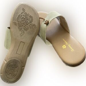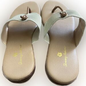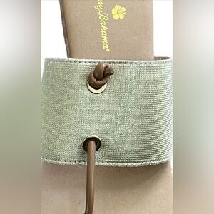 Tommy Bahama Blanchey Thong Slide Sandals Woman’s Metalic Greenish Gold color.