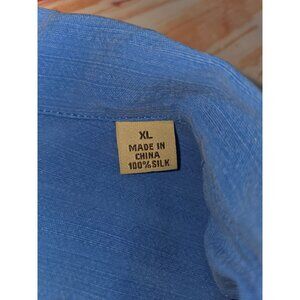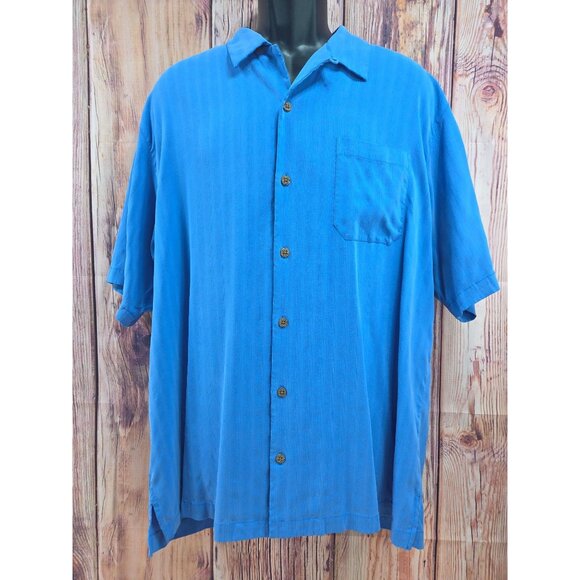 Tommy Bahama Blue 100% Silk XL Mens Hawaiian Shirt Pineapple Embroidery
