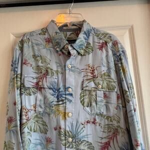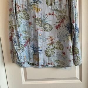 Tommy Bahama Blue Cotton Hawaiian Printed Long Sleeve Button Down Shirt Sz M