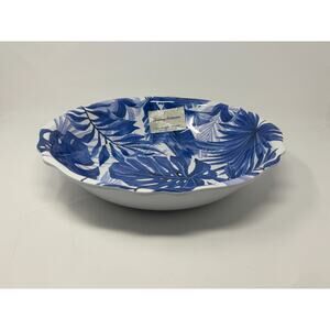Tommy Bahama Blue Monstera Palm Leaf Fronds Melamine Serving Bowl Tropical