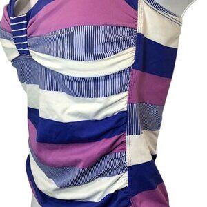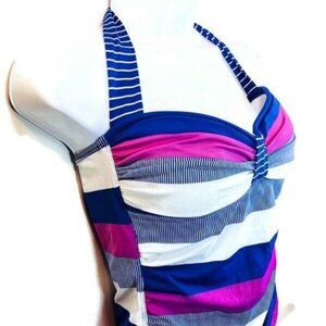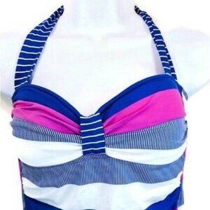 Tommy Bahama Blue Pink Stripe Halter Tankini S Rare