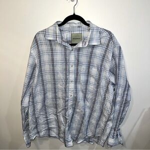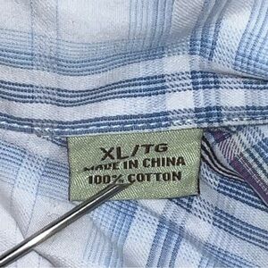 Tommy Bahama Blue Plaid Long Sleeve Shirt XL - 100% Cotton Casual Style