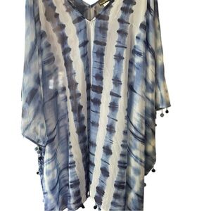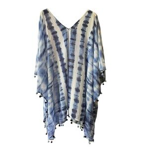 Tommy Bahama Blue Tie-Dye Oliana Stripe Shift Dress Swim Coverup with Tassels