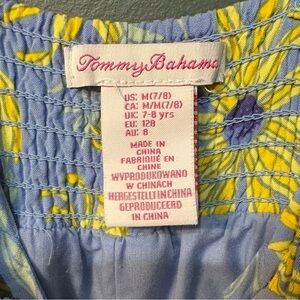 Charming romper with a blue base and yellow floral accents. Ideal for casual wear.