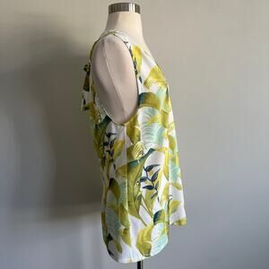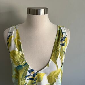 Tommy Bahama Bow Back Halter Blouse V-Neck Tropical Palm Sleeveless Green Small