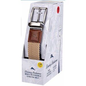 Tommy Bahama Braided Stretch Belt Reversible Khaki/Navy Mens Size 32-36 S M NEW