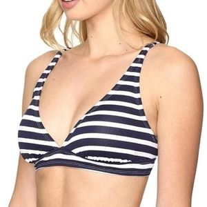 Tommy Bahama Breton Over-The-Shoulder V Neck Bra Bikini Top in Mare Navy/White Stripes