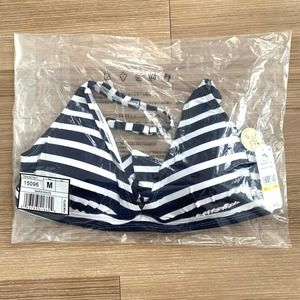 A nautical stripe print adorns this sunshine-ready bikini top.