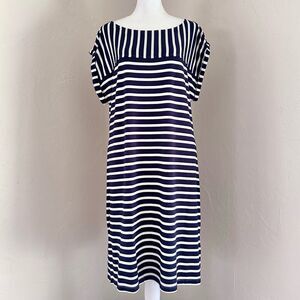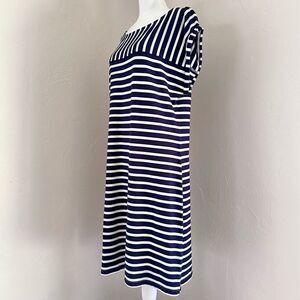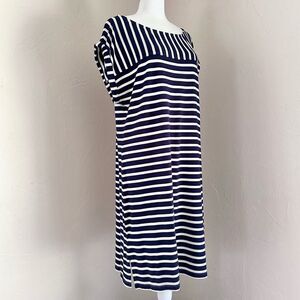 Tommy Bahama Breton Striped T-Shirt Dress with rolled sleeves in navy and white, size M. Gently used.