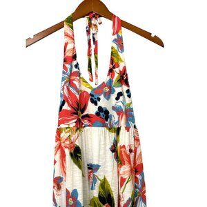 Tommy Bahama Bungaroo Blooms Floral Maxi Dress Tie V-Neck Halter Rayon Size XS
