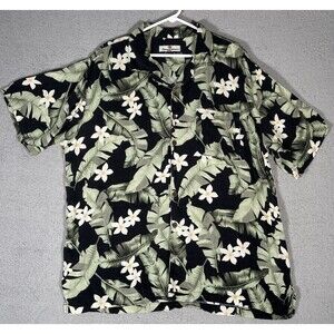 Tommy Bahama Button Down Hawaiian Shirt Men’s Size XL Floral Palms Silk Black