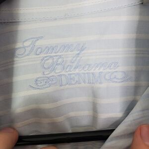 Tommy Bahama Button Down Shirt Mens S Striped Light Blue Cotton Embroidered