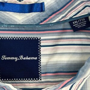 Tommy Bahama Button Front Shirt Blue Pink Striped Long Sleeve Mens XXL 2XL