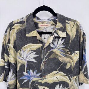 Tommy Bahama Button Front Shirt Mens XL Gray Green Tropical Print Silk