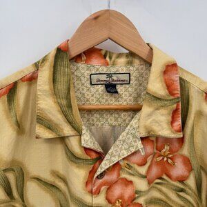 Tommy Bahama Button Front Shirt Mens XL Yellow Orange Silk Flower Print