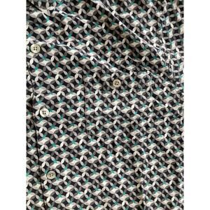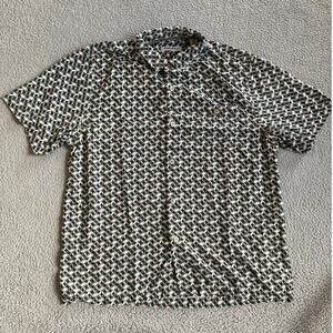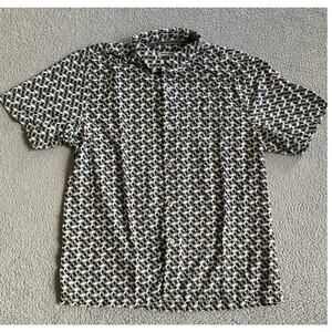 Tommy Bahama Button Shirt Large Silk Geometric Short Sleeve Black Green Retro