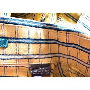 This Tommy Bahama Island Soft button-up shirt in Gold Yellow Blue Plaid is perfect for a vacation, cruise, or party. The bold colors and print add a festive vibe. It's size XL and made from 100% cotton for comfort.
