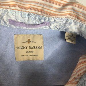 Tommy Bahama Button Up Shirt Large L Orange Long Sleeve Mens B147