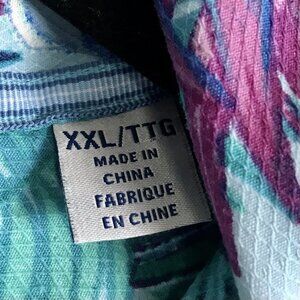 The Tommy Bahama Button Up Shirt in Men's Size XXL from the Hawaiian Island Zone features a vibrant floral pattern, short sleeves, and a collared neckline. Made from a blend of silk and polyester, this versatile shirt is perfect for casual occasions with its easy care and all-season appeal. With its beachy Hawaiian theme and tropical accents, this Tommy Bahama shirt is sure to add a touch of island-inspired style to your wardrobe. Perfect for a relaxing day at the beach or a casual night out, this multicolored shirt is a must-have for any man looking to bring a bit of the tropics into his wardrobe.