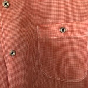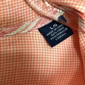 Tommy Bahama orange plaid linen and Tencel button up shirt. Size large. Good used condition no flaws.