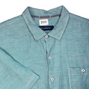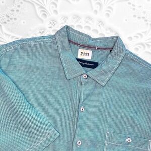 Tommy Bahama Button Up Shirt Men's Adult 2XL XXL Blue Long Sleeve Linen Blend