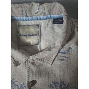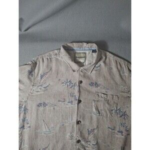 Tommy Bahama Camp Shirt Men XL Silk Hawaiian Nautical Marlin Palm Trees Soft EUC