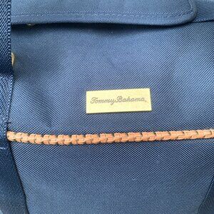 Tommy Bahama Canvas Travel Bag Mojito Blue Duffle Basketweave Trim 20" x 14" x 8