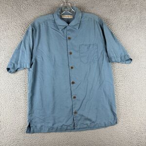 Tommy Bahama Caribbean Stud Silk Rayon Shirt Mens Small S/P Blue Card (Stains)