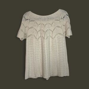 Tommy Bahama Cascade Lambswool Cream Knit Medium Short Sleeve Sweater
