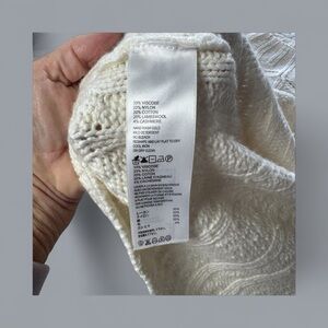Soft lambswool Tommy Bahama cream cable knit sweater with intricate patterns. Cozy and stylish.