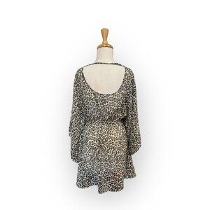Tommy Bahama Cat's Meow Open Back Lace Up Tunic Size S/M Leopard Print Cover Up